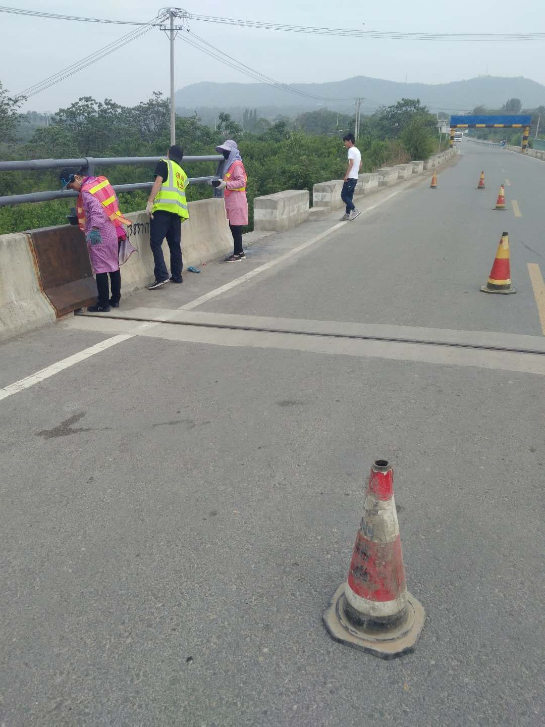 為確保管養(yǎng)道路安全暢通、路容美觀(guān),并以良好、整潔的公路環(huán)境迎接干線(xiàn)公路2018年河南省交通部檢查,養(yǎng)護(hù)公司經(jīng)過(guò)精心準(zhǔn)備,于5月5日組織9名養(yǎng)護(hù)人員對(duì)G223滎陽(yáng)段楊廟橋的護(hù)欄和隔離墩進(jìn)行全面的提升整治,形成迎檢與日常養(yǎng)護(hù)工作齊頭并進(jìn)的良好格局,確保迎檢工作圓滿(mǎn)收官。