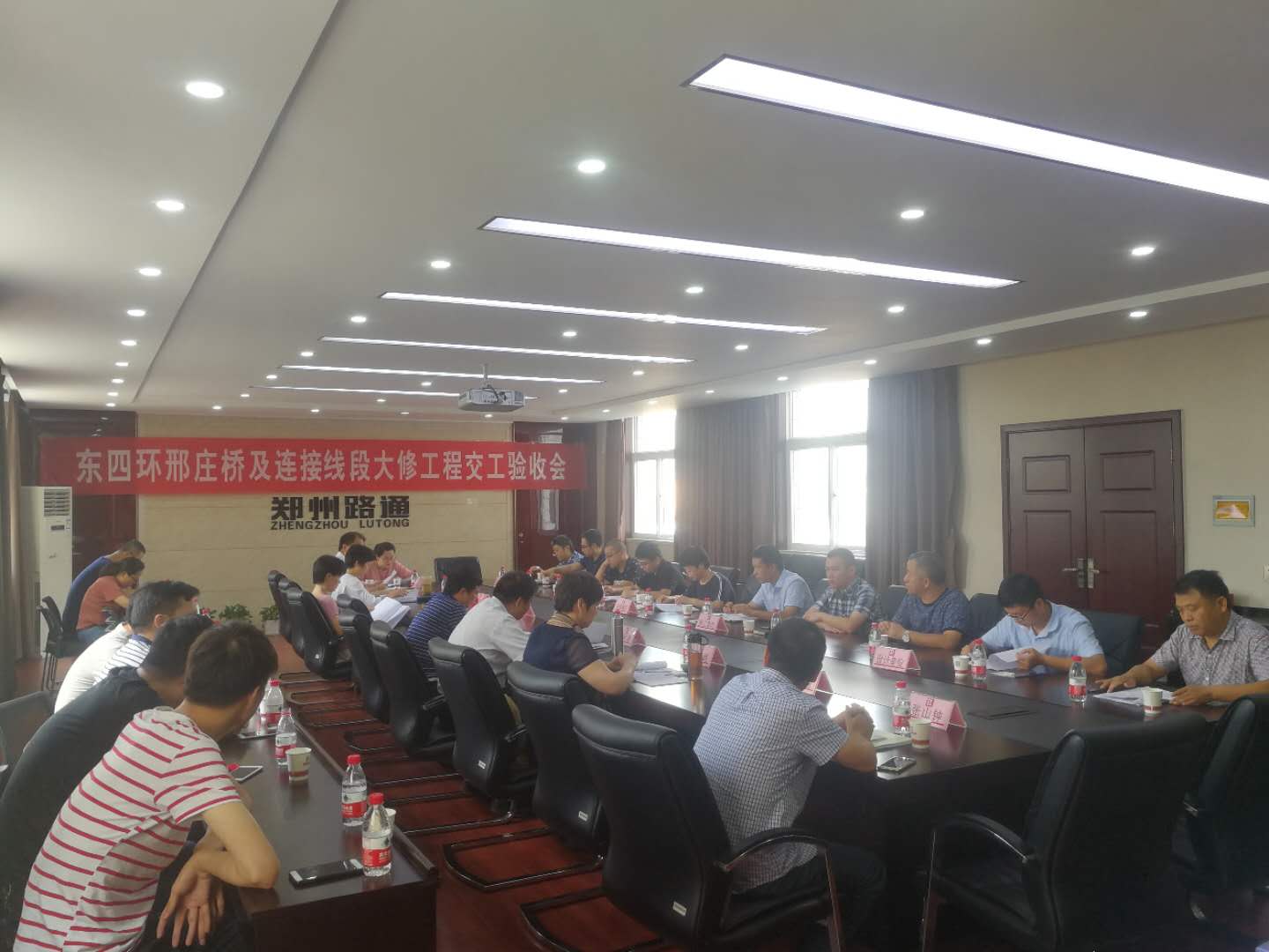 2018年8月15日上午,由我公司承建的金水東路立交和邢莊橋及連接線段大修工程交工驗收會議在路通公司三樓會議室如期召開,鄭州市公路管理局副局長李遂生、副局長董學清、總經(jīng)濟師姜慶紅等領導出席會議,項目法人、設計單位、施工單位、監(jiān)理單位、監(jiān)督單位及接養(yǎng)單位負責人共30余人參加了會議。