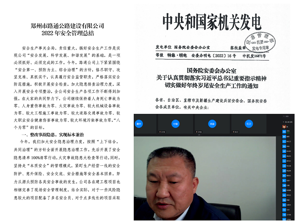 12月15日,我公司采用線上會議形式組織召開2022年第四季度安全生產(chǎn)例會暨安全生產(chǎn)工作總結(jié)會。公司安委會主要領(lǐng)導(dǎo)、成員單位安全主管領(lǐng)導(dǎo)及一線專職安全管理員參加會議。會議由公司安全法務(wù)部部長孫仲垚主持。