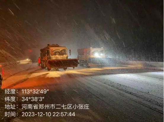 2023年12月10日晚,河南省首輪大范圍雨雪來(lái)襲!為確保干線公路的安全暢通,鄭州路通迅速啟動(dòng)《公路應(yīng)急除雪防滑預(yù)案》,各級(jí)管理人員、全體養(yǎng)護(hù)人員、設(shè)備駕駛員按照“以雪為令,下雪上路,隨下隨清,雪停路凈”的要求,連夜奮戰(zhàn)除雪除冰,打響了今冬除雪保通“第一槍”。
