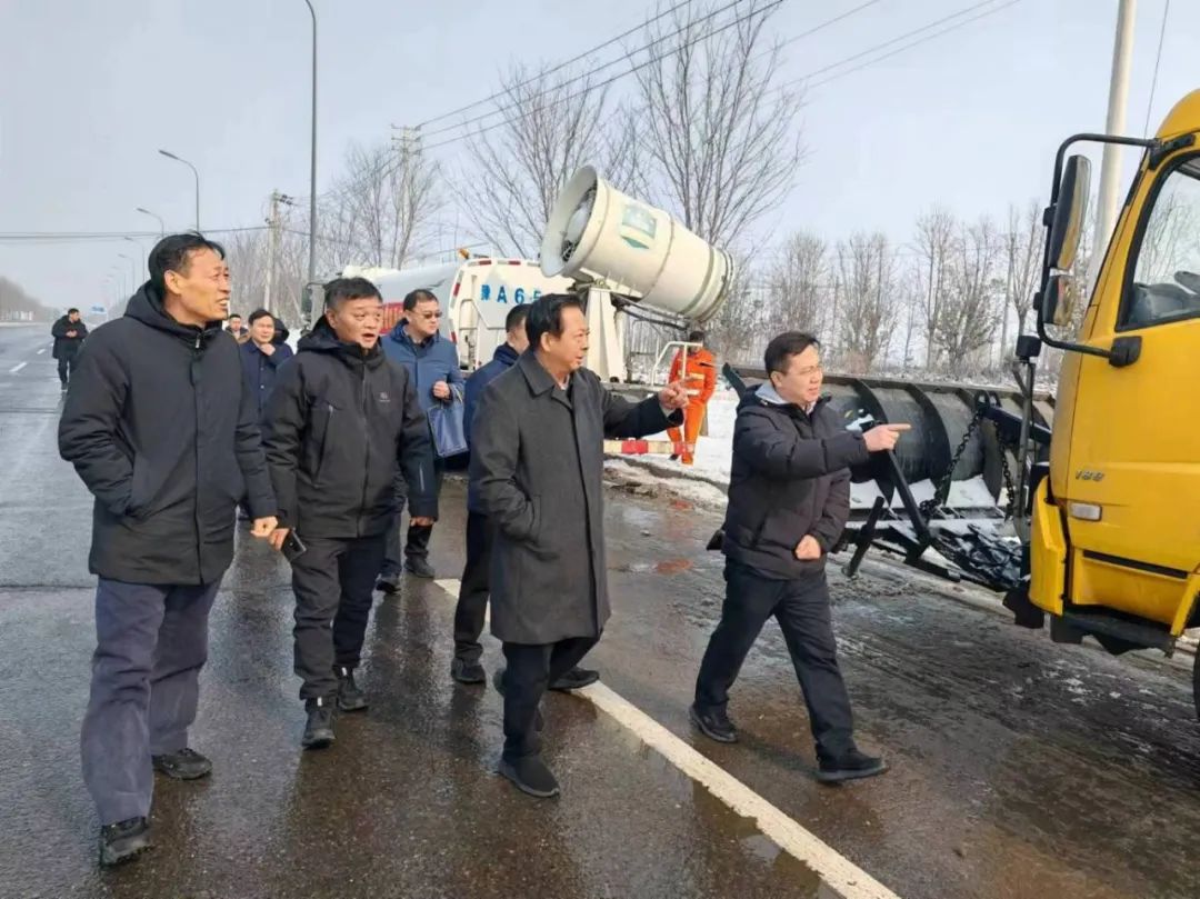 2024年2月5日上午,河南省交通運輸廳副廳長唐彥民一行在鄭州市公路事業(yè)發(fā)展中心副主任郭宇航、養(yǎng)護(hù)技術(shù)處處長侯林杰的陪同下前往G107新線實地查看路通公司除雪保暢工作開展情況。